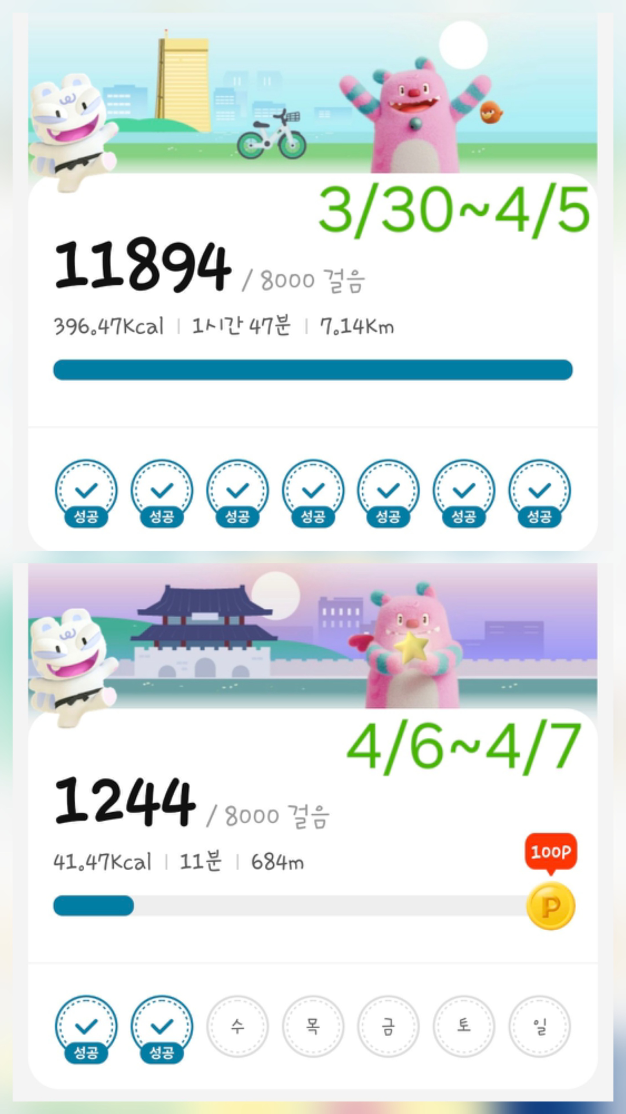 ์ผ์ฃผ์ผ ์ ๋ ํ๋ฃจ 8์ฒ๋ณด ๊ฑท๊ธฐ๋ฅผ ๊พธ์คํ ์ค์ฒํ์ต๋๋ค.