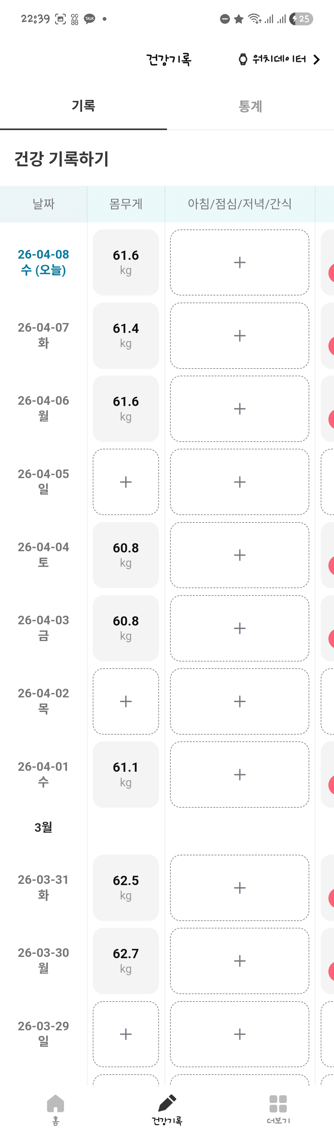 ์ฒด์ค๊ณ๋ฅผ ๊น๋ฐํ ๋ ๋ ์์ง๋ง ์ผ์ฃผ์ผ์ ๋ณด๋ค๋ ๋ฏธ์ฝํ๊ฒ ๋๋ง ๋น ์ง ๊ฑธ ํ์ธํ ์๊ฐ ์์์ต๋๋ค.