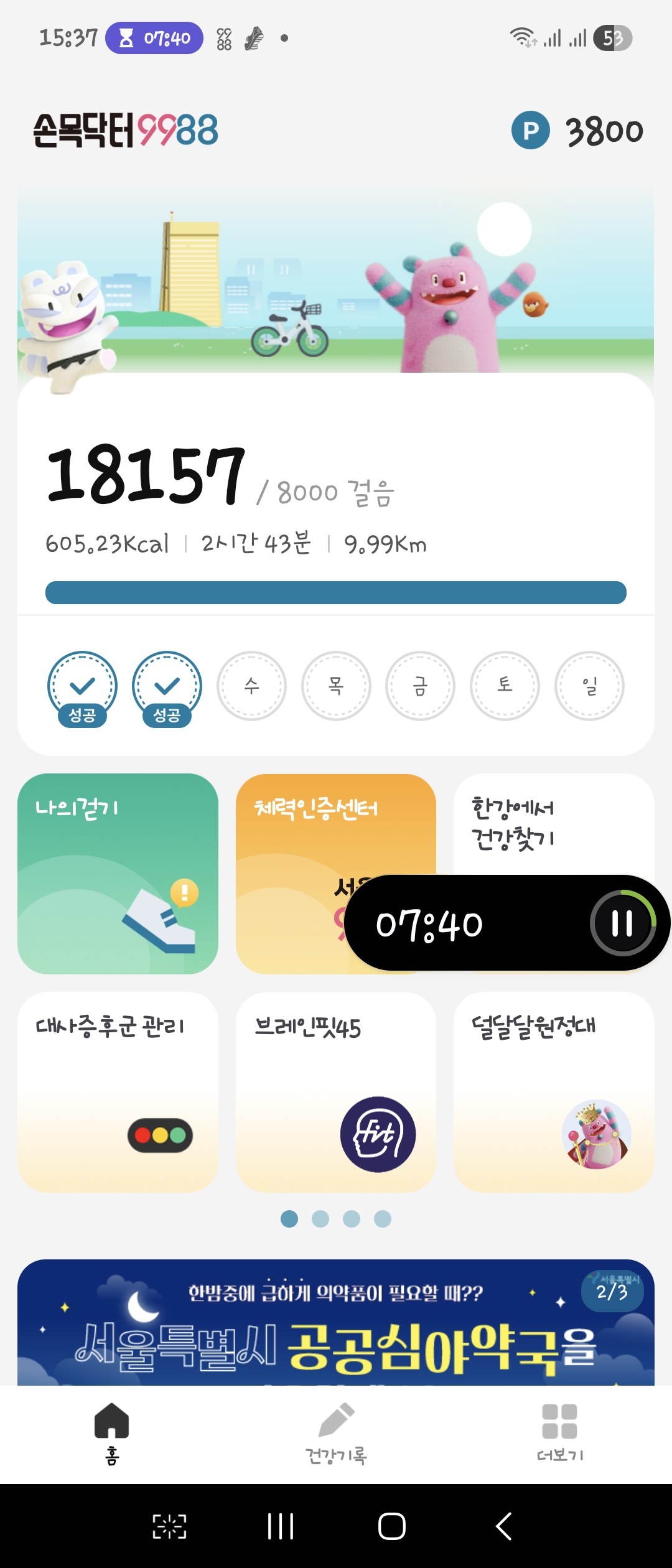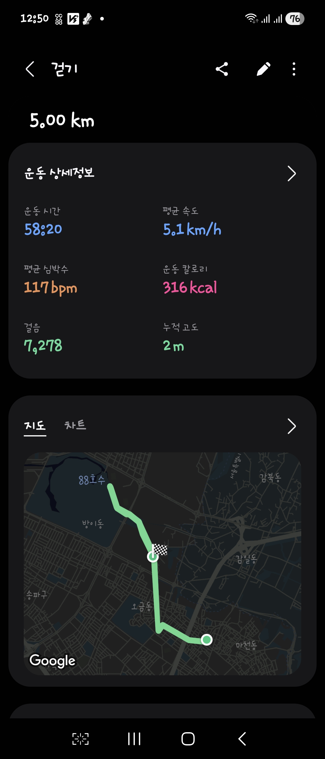 5km๋ฅผ ๊ฒจ์ฐ ์ฑ์ ์ต๋๋ค.